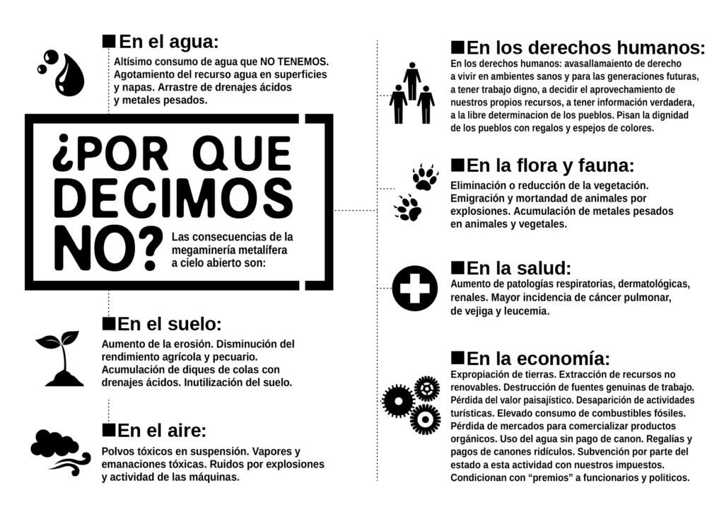 Avasallamiento de derecho a vivir en ambientes sanos y para las generaciones futuras, a tener trabajo digno, a decidir el aprovechamiento de nuestros propios recursos, a tener información verdadera, a la libre determinación de los pueblos.